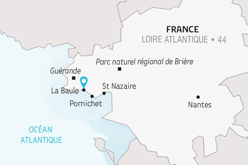 Longue plage de sable blond qui s'étend sur 9 km, atmosphère iodée, plus de 400 villas « belle époque » à l'ombre des pins. La Baule ne manque pas d'attraits au point d'être devenue une des stations balnéaires les plus emblématiques de la côte Atlantique. Elle est aussi le point de départ idéal pour découvrir la région des marais salants de Guérande, les charmants ports de pêche et petites cités de caractère qui jalonnent le littoral de la Loire-Atlantique, et même Nantes, la belle métropole ligérienne. Vous n'avez plus qu'à vous laisser guider et découvrir la côte d'Amour si bien nommée.