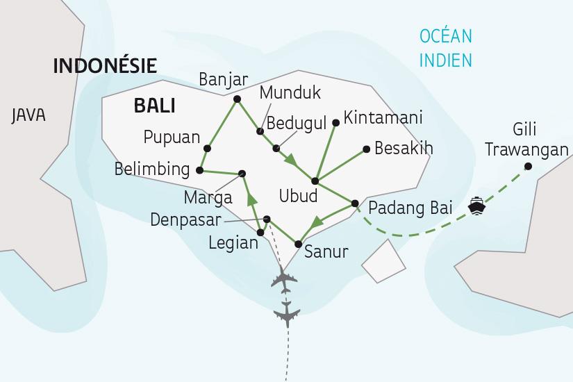 Pas plus grande qu'un département français, Bali est pourtant une des destinations touristiques les plus prisées au monde. Et à juste raison ! Ce petit paradis possède tous les éléments pour satisfaire les exigences des voyageurs, quelles que soient leur nationalité, leurs attentes : de belles plages, dont celles méconnues des Gili voisines ; des volcans extraordinaires couverts de forêts tropicales ; de magnifiques rizières en terrasses ; des temples à l'architecture étonnante...Et puis, il y a les Balinais, affables, souriants, qui ont su garder leur identité, leur culture, malgré le boom touristique. Tous les ingrédients sont réunis pour un voyage inoubliable.