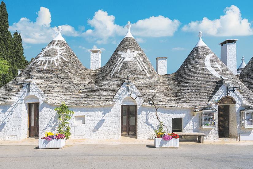 départ pour la région des Pouilles et visite guidée de Bari, la capitale régionale, grande ville industrielle et commerçante, mais aussi port important sur l'Adriatique. La vieille ville, Bari Vecchia est superbe, striée de petites rues sinueuses conçues pour dérouter d'éventuels assaillants : la basilique Saint-Nicolas, la cathédrale, le château normand...Déjeuner libre. L'après-midi, court trajet jusqu'à Alberobello et visite guidée de cette petite cité de caractère qui abrite plus de 1500 trulli, l'habitat traditionnel des Pouilles. Installation à l'hôtel pour 3 nuits à Alberobello. Dîner libre, nuit.