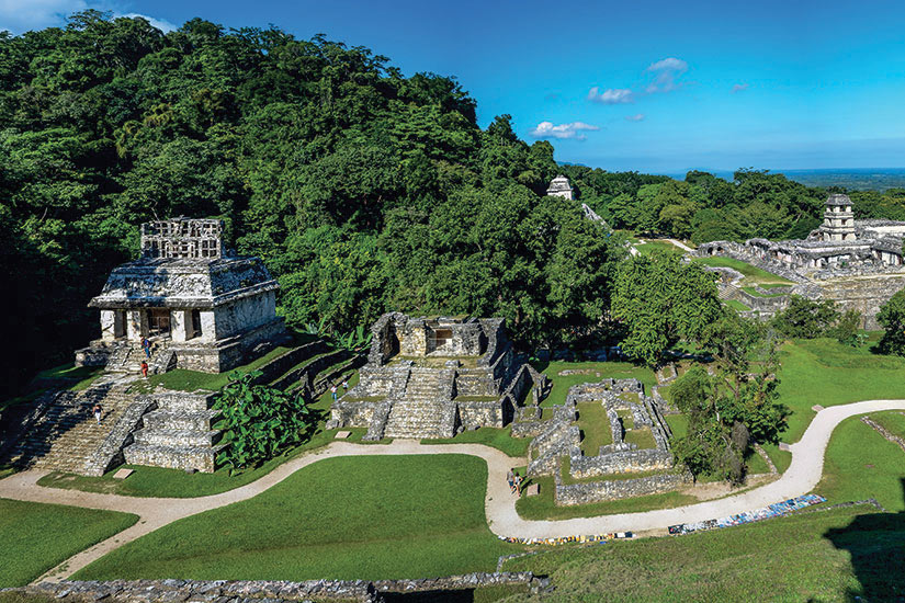 petit déjeuner dans une plantation de café. Arrivée aux cascades de Agua Azul aux eaux turquoise. Repas de poisson grillé. Continuation vers Palenque, ville située au bord de la grande plaine du Tabasco. Visite du site de Palenque, ensemble de ruines imbriqué dans un labyrinthe de petites collines. Repas nuit.