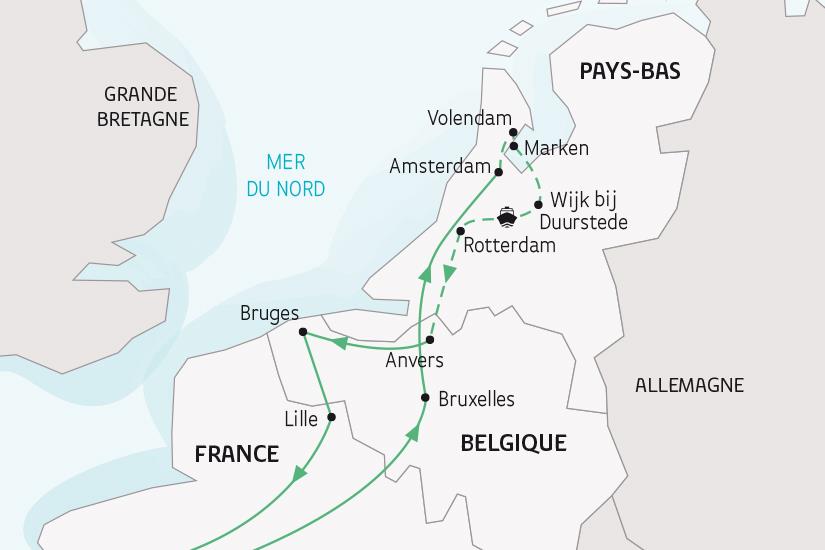 petit-déjeuner à bord. Débarquement après le petit-déjeuner, vers 09h00, puis route vers Bruges. Visite guidée de la plus belle ville de Belgique, classée par l'Unesco, magnifiquement conservée, où vous aurez l'impression de faire un voyage dans le temps, à l'époque des splendeurs des ducs de Bourgogne : le Burg, coeur historique de la ville, l'hôtel de ville et la basilique du Saint-Sang, la Grand-Place... Puis, embarquement pour une croisière sur les canaux de la « Venise du Nord ». Déjeuner sur la Grand-Place. L'après-midi, petit temps libre pour flânerie puis route pour la France, Lille. Dîner nuit à l'hôtel.